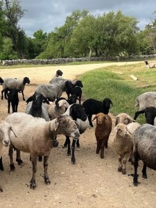 OCK ewes & lambs, leader Boots with her bell