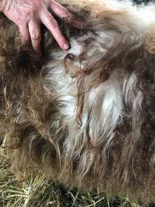 PLF Gena C0150 fleece, brown lamb transition to white halfway
